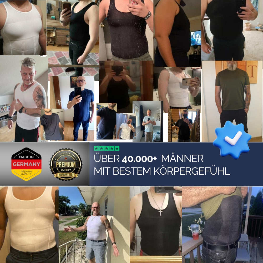 Normale Kompressionsshirts sind entweder zu schwach oder schneiden ein – und sie sind meist für dünne Sportler gemacht, nicht für echte Männer mit Bauch und kräftiger Brust.