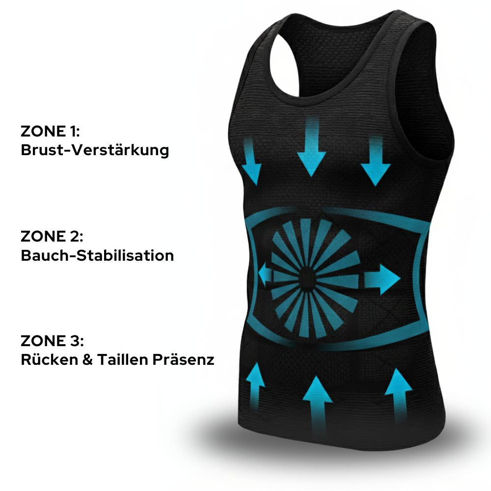 Das Enquluvra-Unterhemd arbeitet mit zielgerichteten Kompressionszonen: